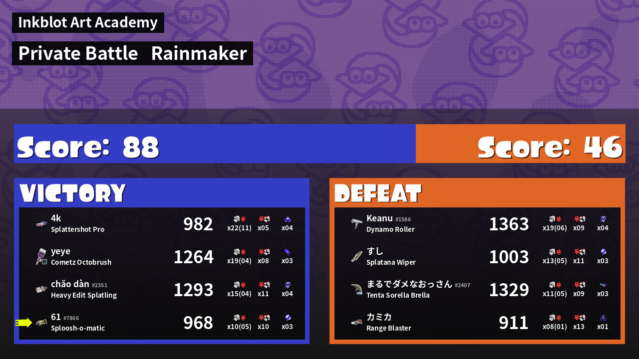 | Weapon | Sploosh-o-matic ( Curling Bomb / Ultra Stamp) | ||