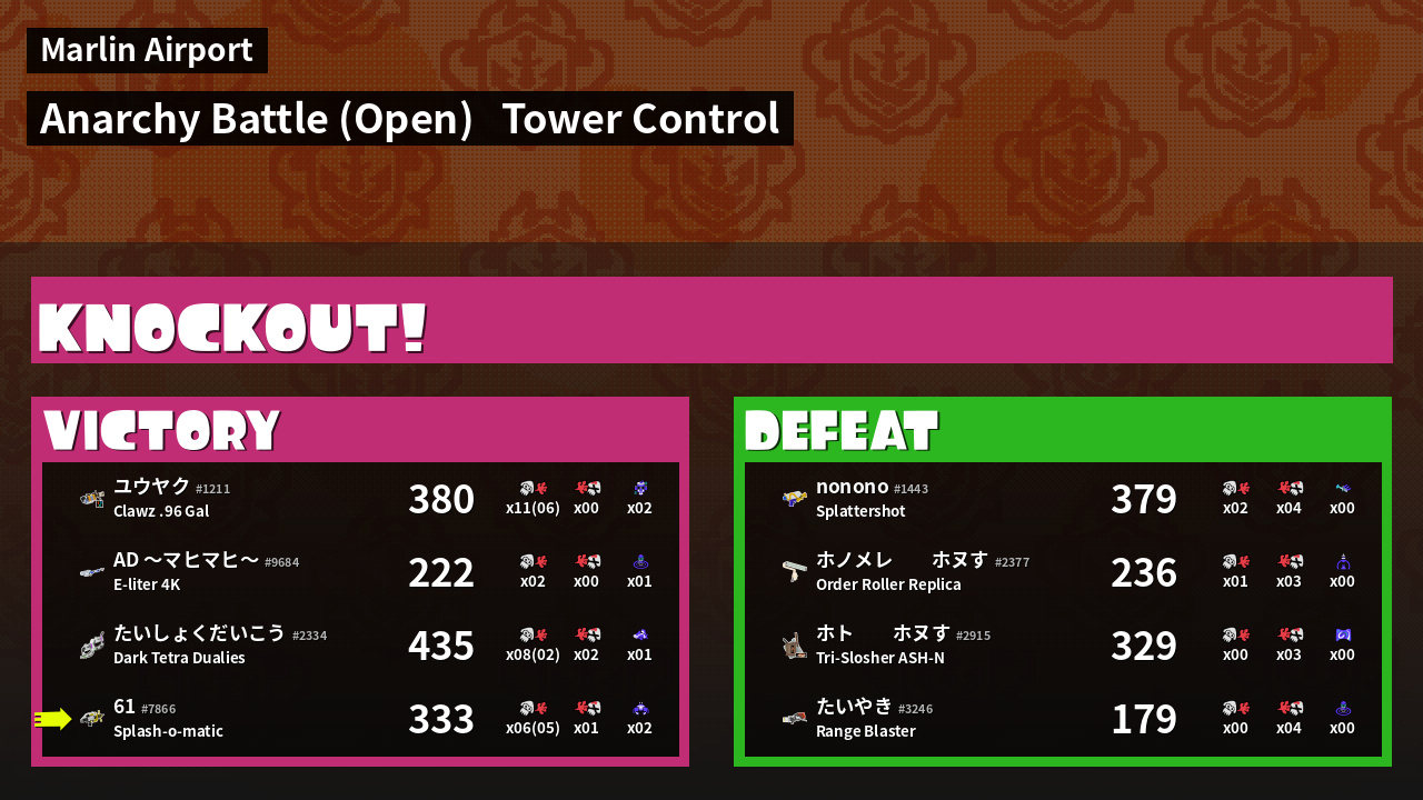 | Mode | Tower Control - Anarchy Battle (Open) | ||
