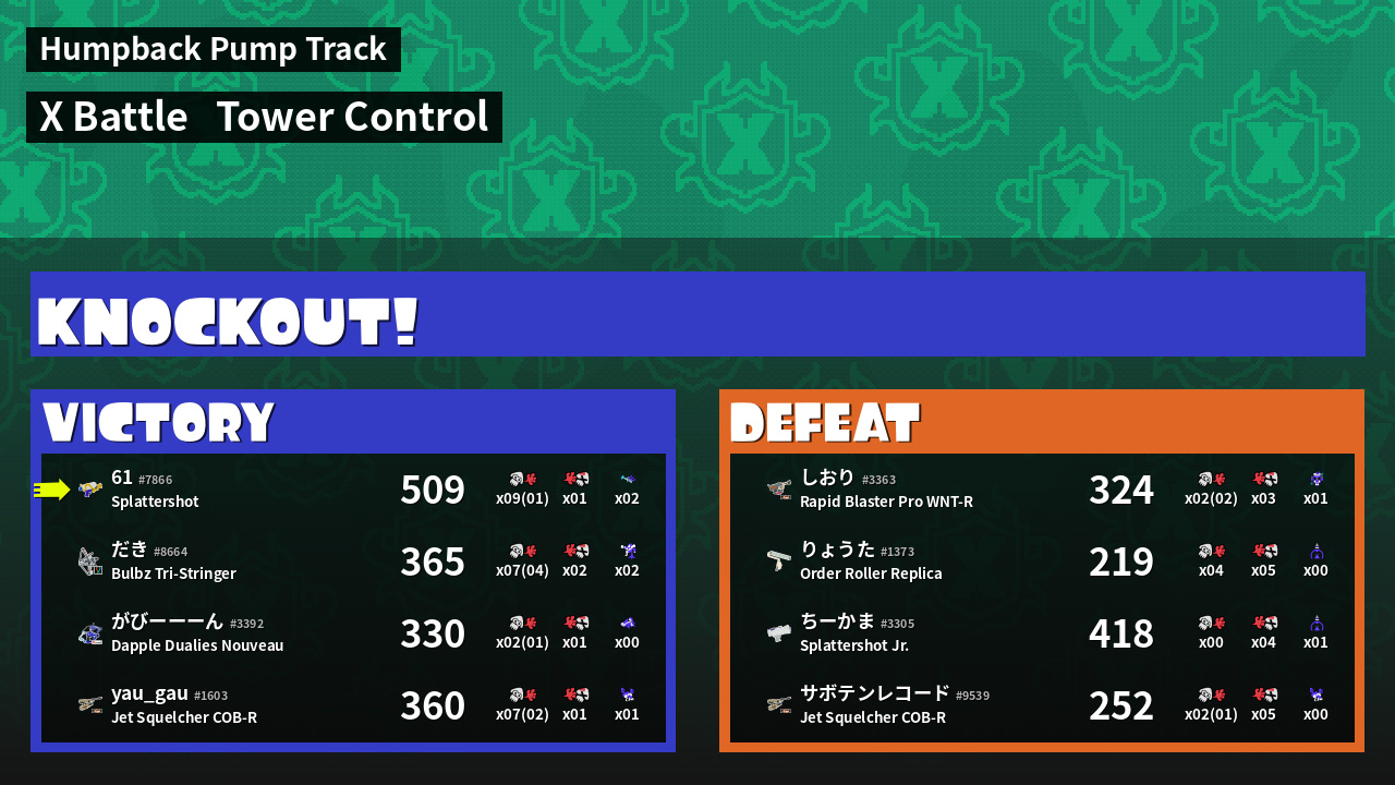 | Medals | #1 Overall Splatter #1 Turf Inker #1 Popular Target | ||