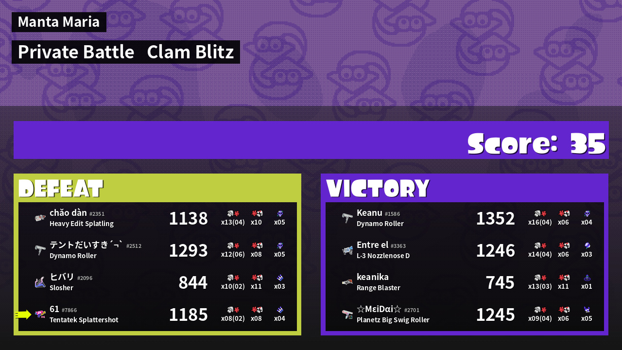 | Mode | Clam Blitz - Private Battle | ||