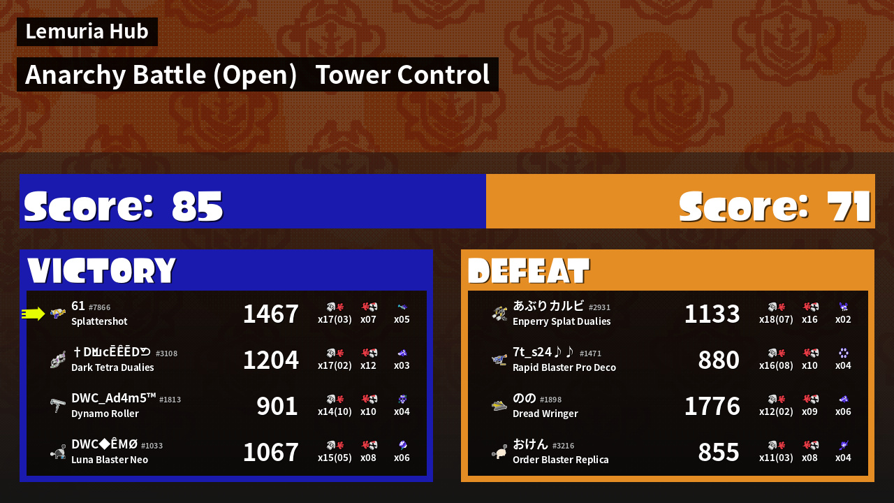 | Mode | Tower Control - Anarchy Battle (Open) | ||