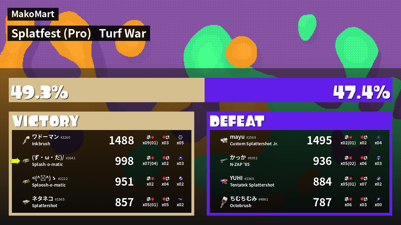 | Medals | #1 Popular Target #1 Splat Assister #1 Damage Taker | ||
