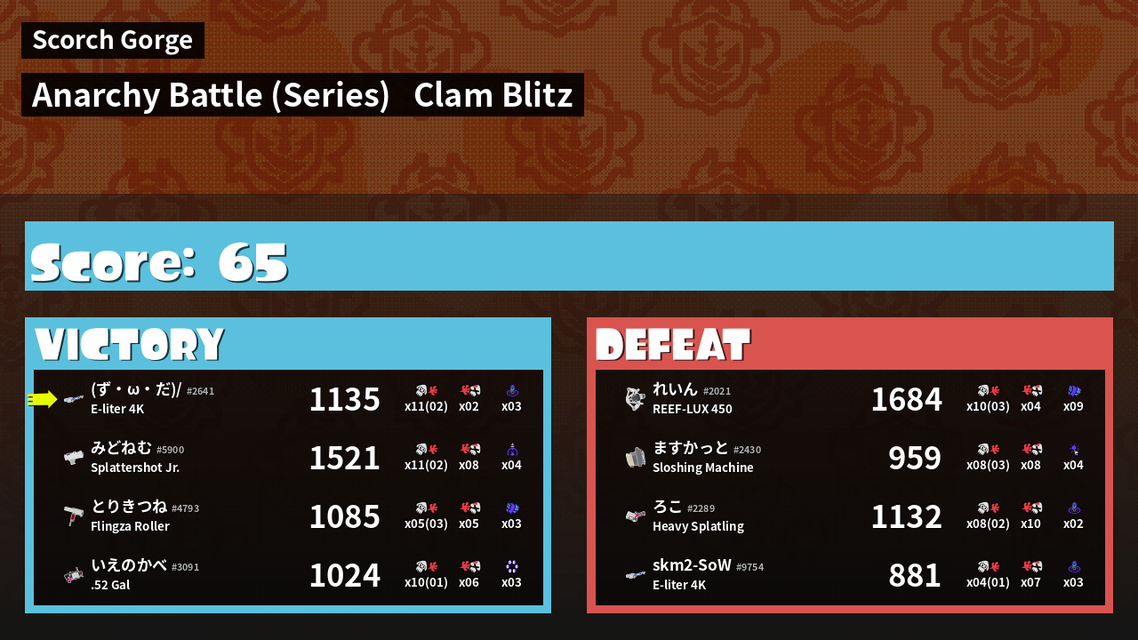 | Mode | Clam Blitz - Anarchy Battle (Series) | ||