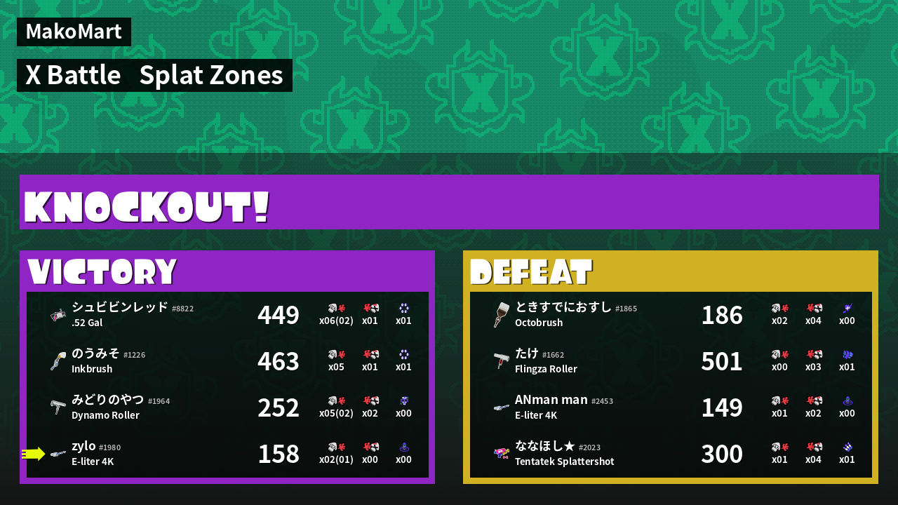 | Mode | Splat Zones - X Battle | ||