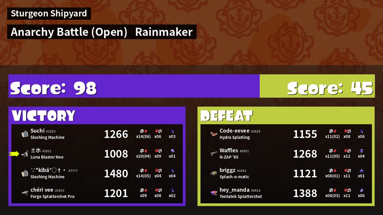 | Mode | Rainmaker - Anarchy Battle (Open) | ||