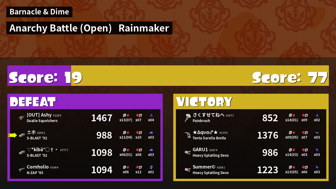 | Mode | Rainmaker - Anarchy Battle (Open) | ||