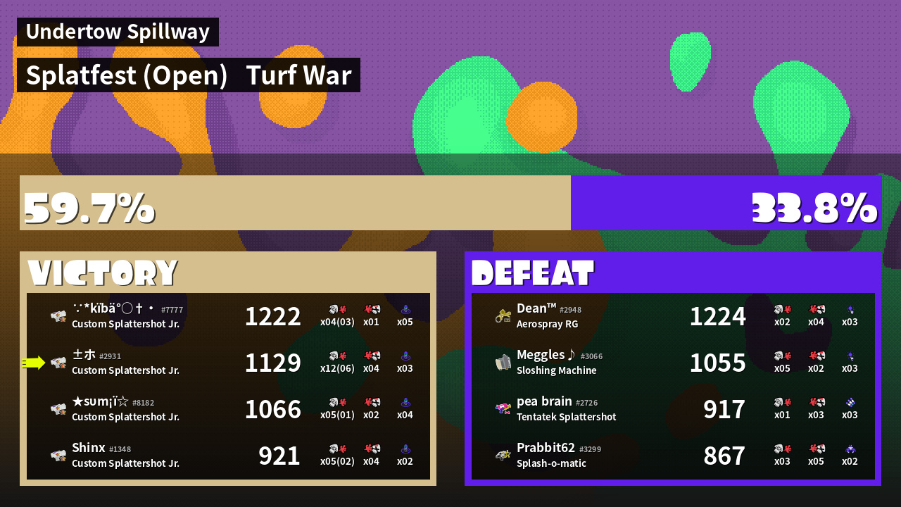 | Medals | #1 Overall Splatter #1 Home-Base Inker #1 Enemy Splatter | ||