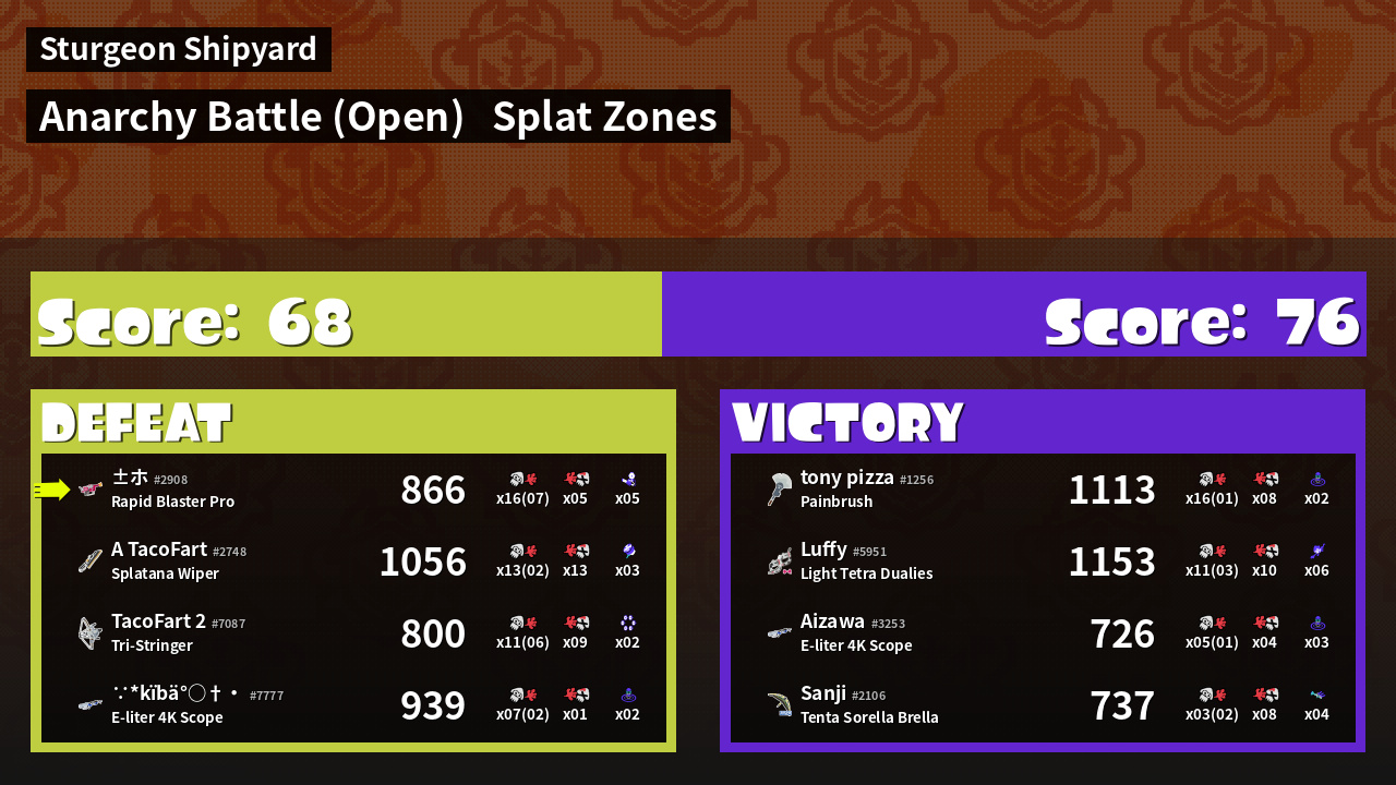 | Mode | Splat Zones - Anarchy Battle (Open) | ||