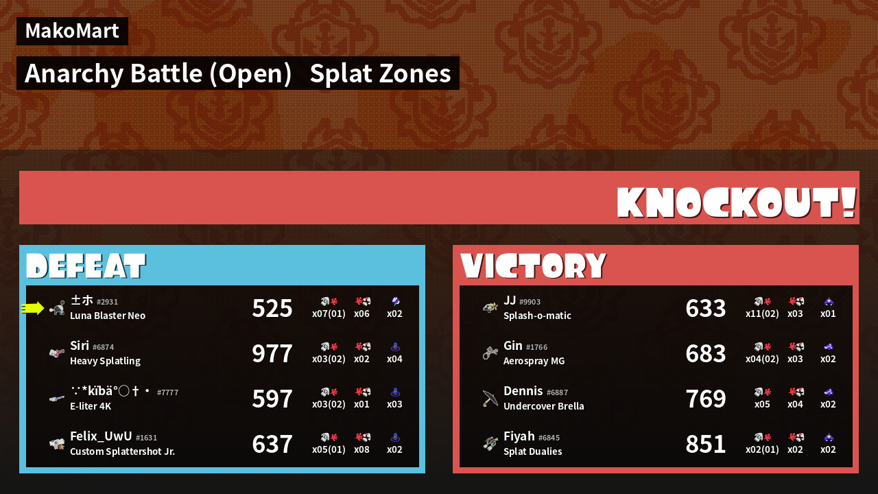 | Mode | Splat Zones - Anarchy Battle (Open) | ||