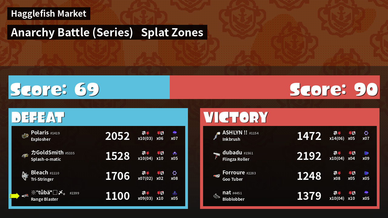 | Medals | #1 Splat Zone Guard #1 Splat Zone Hero #1 Ink Consumer | ||