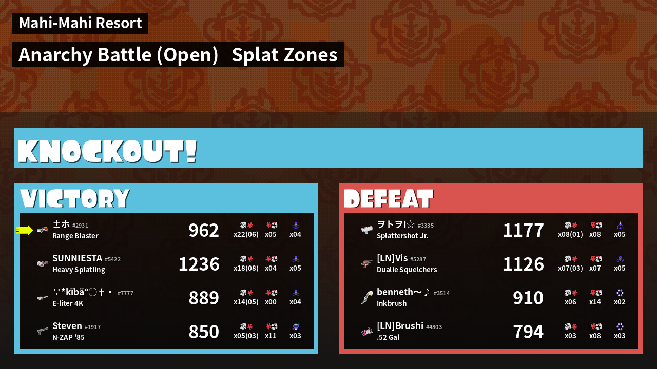 | Mode | Splat Zones - Anarchy Battle (Open) | ||